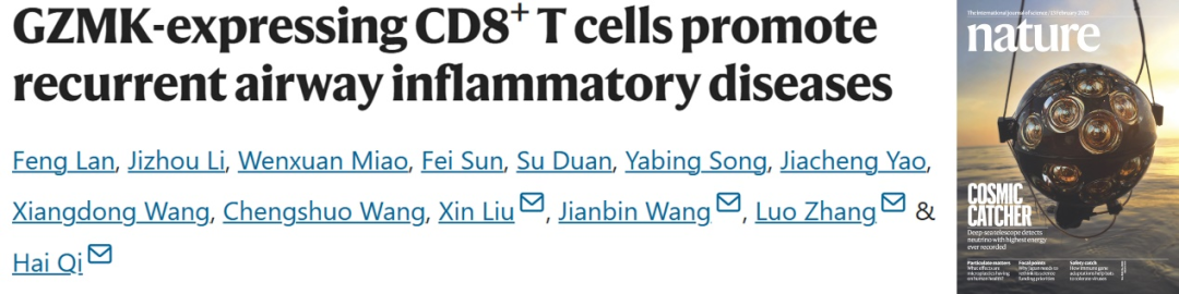 标题:GZMK-expressing CD8+ T cells promote recurrent airway inflammatory diseases