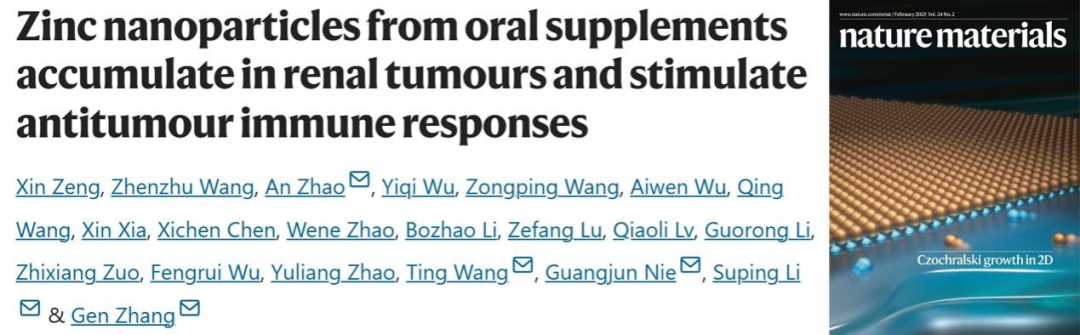 标题:Zinc nanoparticles from oral supplements accumulate in renal tumours and stimulate antitumour immune responses