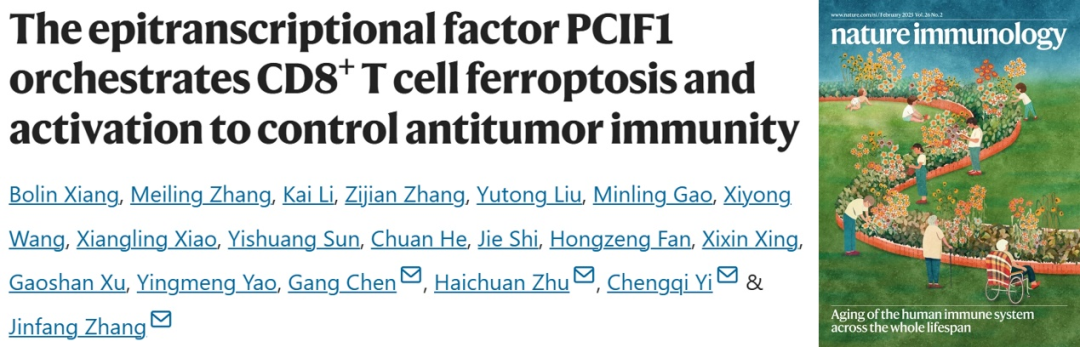 标题:The epitranscriptional factor PCIF1 orchestrates CD8+ T cell ferroptosis and activation to control antitumor immunity